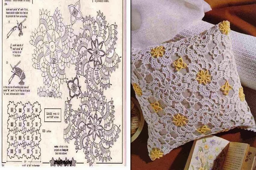 07.Если есть уже подушки и хочется чего-то внести нового в интерьер,то можно просто украсить ее множеством вязаных аппликаций,как,например на этом фото