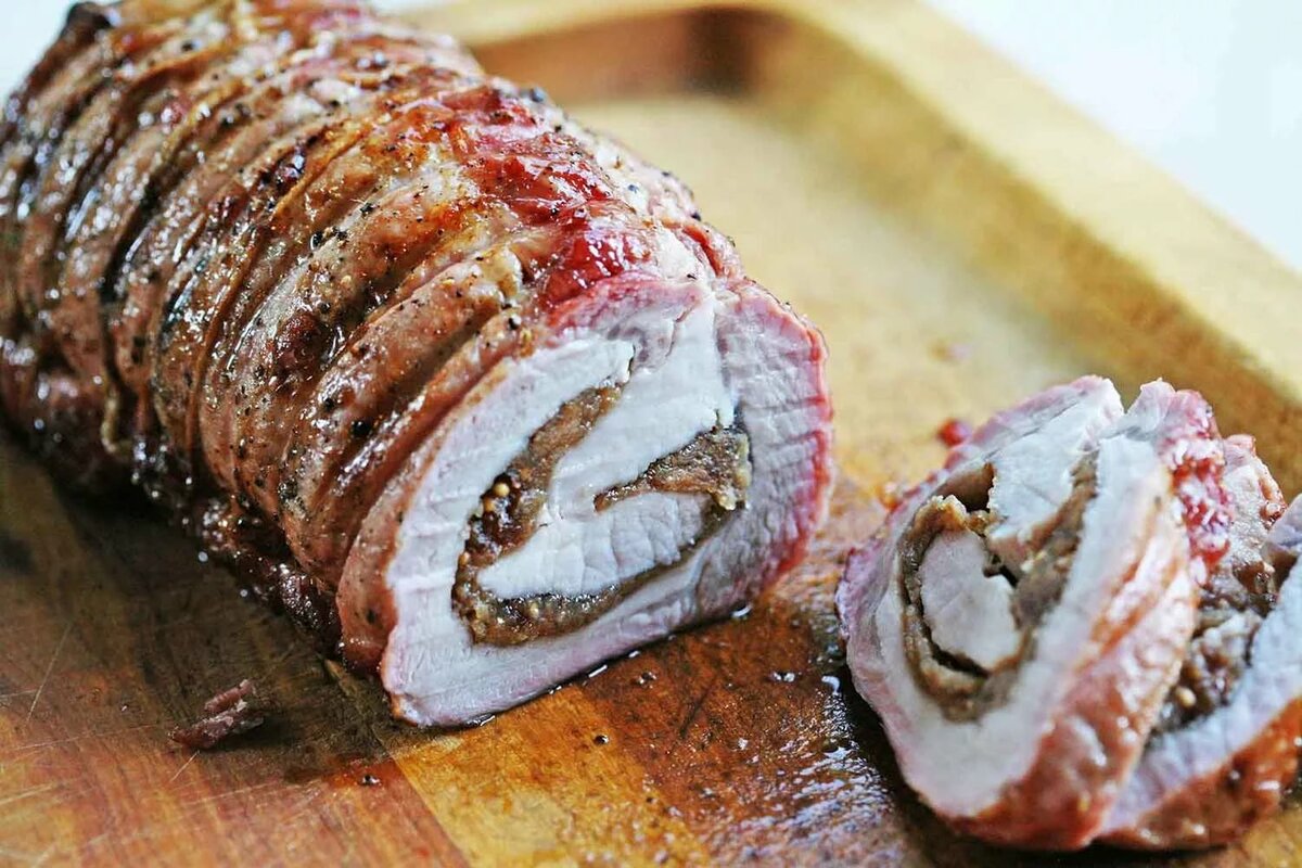 МЯСНОЙ РУЛЕТ С ГРУШАМИ И СЫРОМ