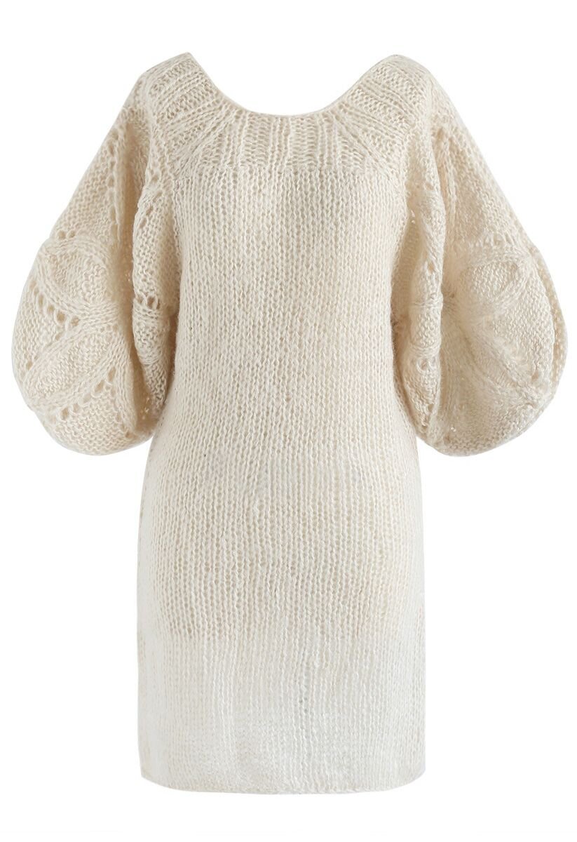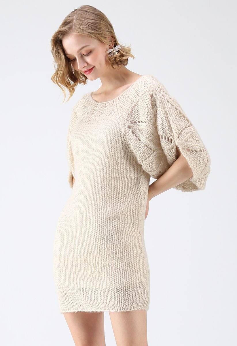 Пряжа для такой модели подойдет объемная, но легкая. Например, толстый мохер без длинного ворса. В интернет-магазине указан состав платья - стопроцентный акрил.