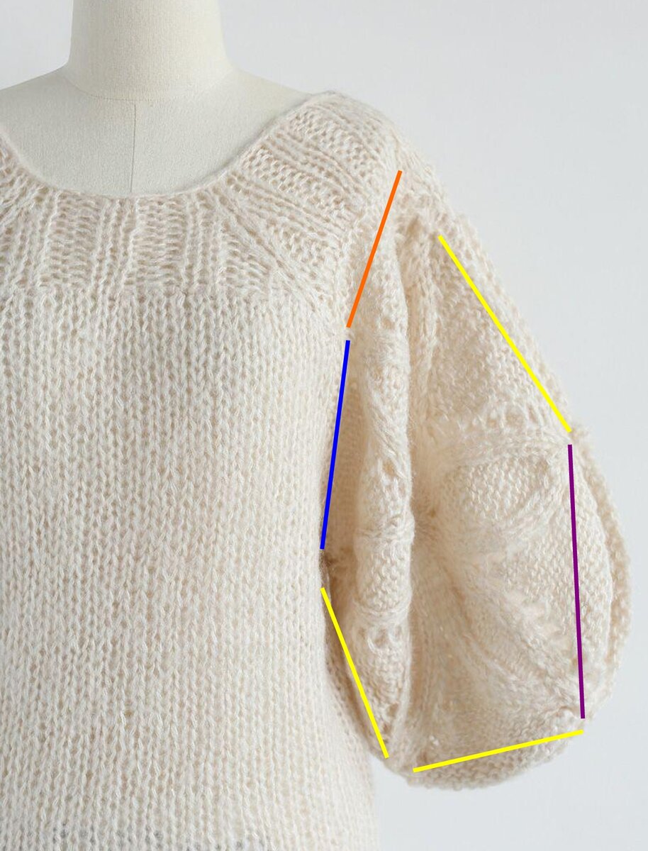 На этом фото я отметила участки рукава, соответствующие обозначениям на выкройке.