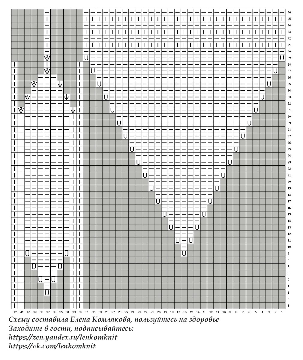 31 ряд - *накид, 21 изн., накид, 1 лиц., 2 вместе лиц. с наклоном влево, 5 изн., 2 вместе лиц. с наклоном вправо, 1 лиц. *