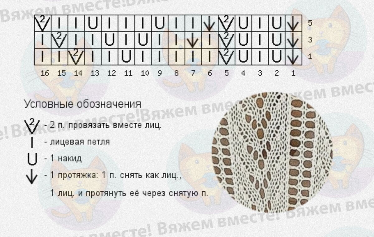 На схеме обозначены только лицевые ряды узора.