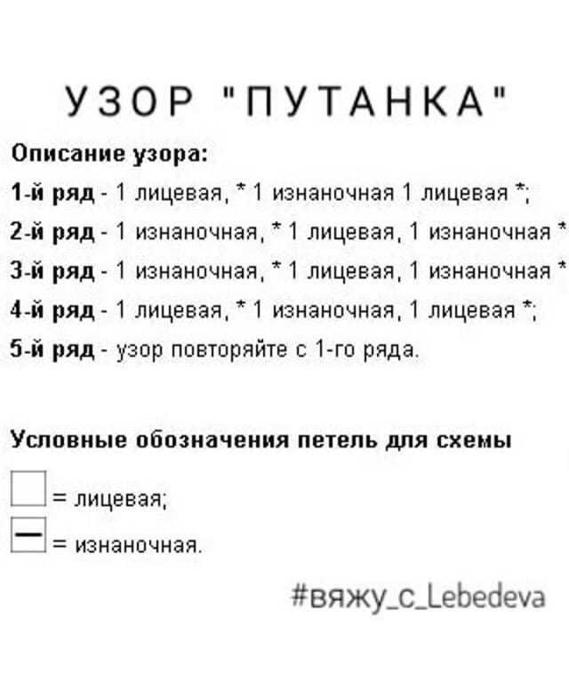 Набираем 66 петель на спицы. Первый ряд изнаночный. 1 кромочная, 6 петель планки узором путанка( схема узора есть в карусели). Вяжем резинкой 1*1, 6петль планки и последние 3 петли для i-cord снимаем не провязанные нить перед работой. Второй ряд лицевой. Первые 3 петли провязываем всегда лицевыми и далее по рисунку.