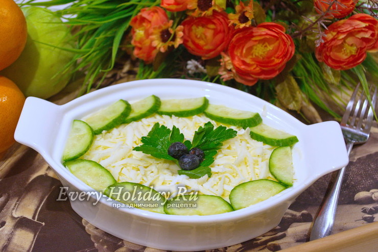 Данный салат довольно сытный, но и легкий одновременно. Подайте новый салатик к 8 Марта и ваши любимые и родные люди оценят ваши старания, ведь салат действительно вкусный.