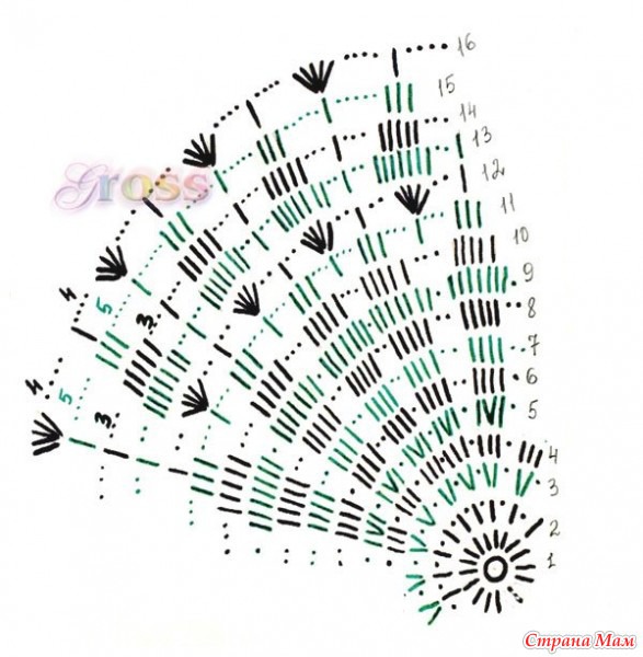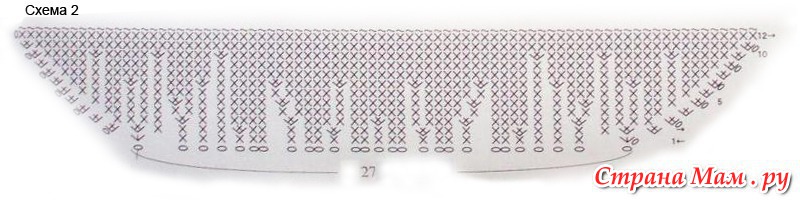 9-й ряд вяжем уже не по схеме, где клин вяжем 5ст/н 1в. п 1ст/н 1в. п. 1ст/н 1в. п.1 ст/н 1 в. п 5 ст/н, между клиньями также 3в. п.
