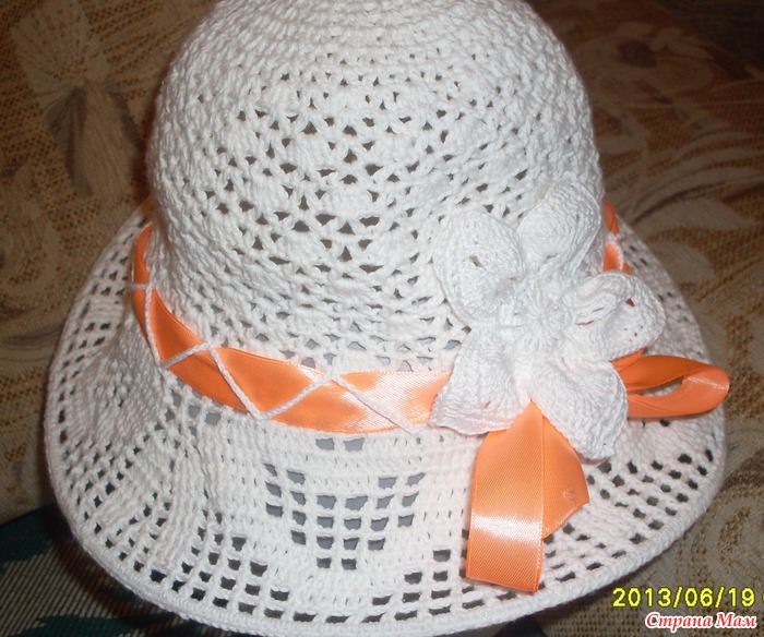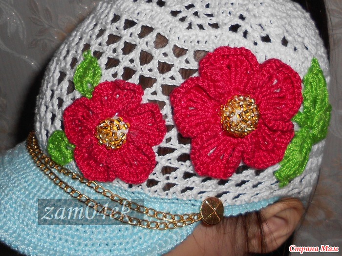 Посмотрите поближе фото белой шапки, у меня по ней до полей получается 5 рядов, если вам хватит глубины, то начинайте вязать как там :