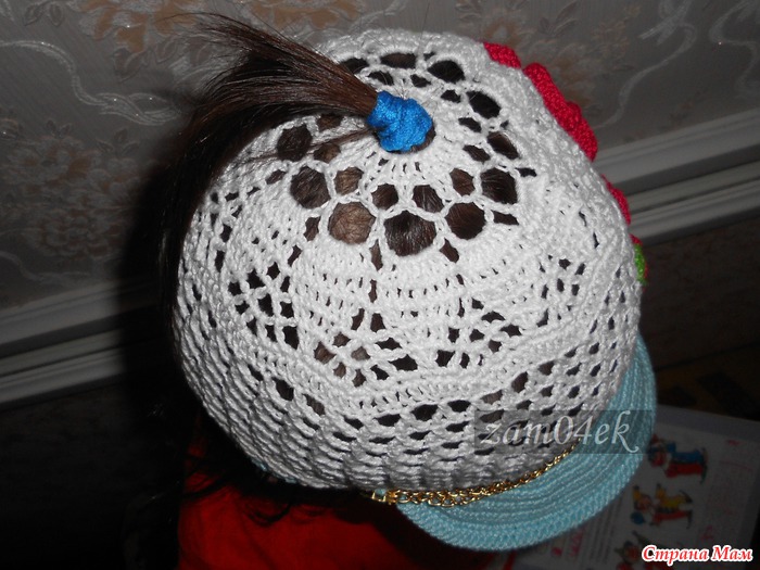Если глубины шапки не хватает, можно провязать несколько рядов филейной сеткой.