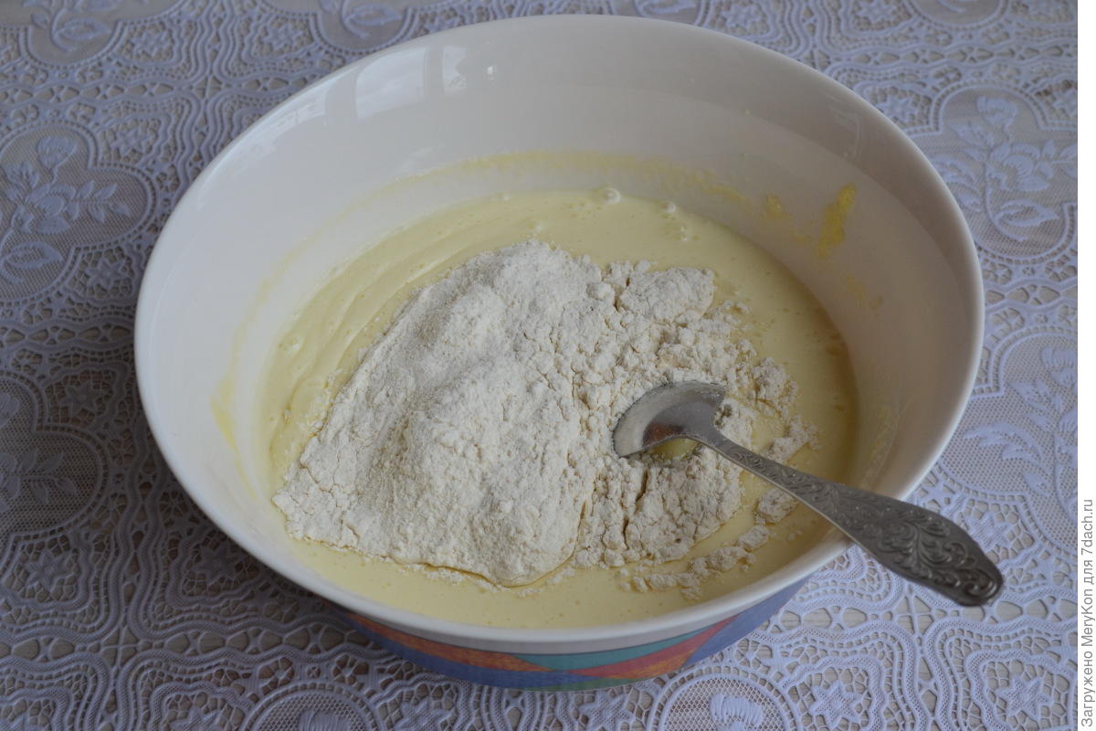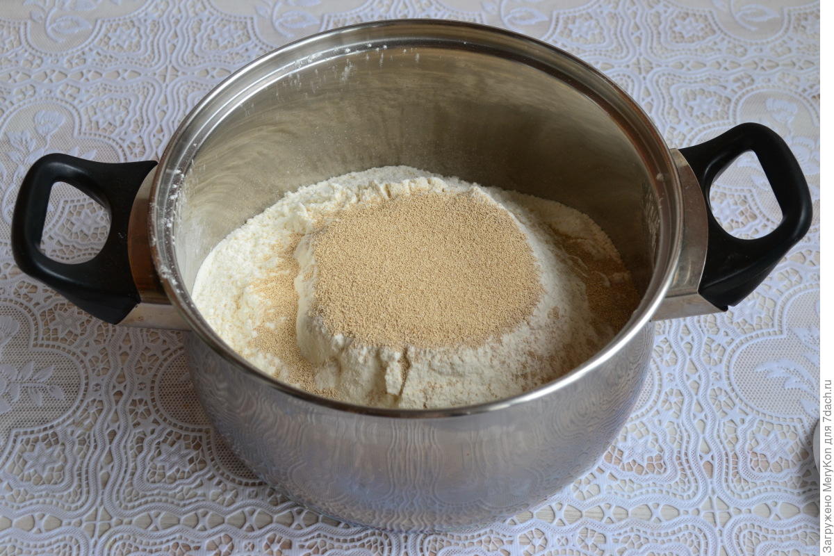 Вводим в жидкую смесь (частями) просеянную муку и дрожжи, перемешиваем.