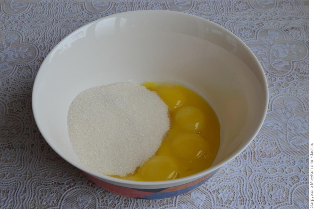 Отделяем белки от желтков. Желтки перетираем с сахаром.