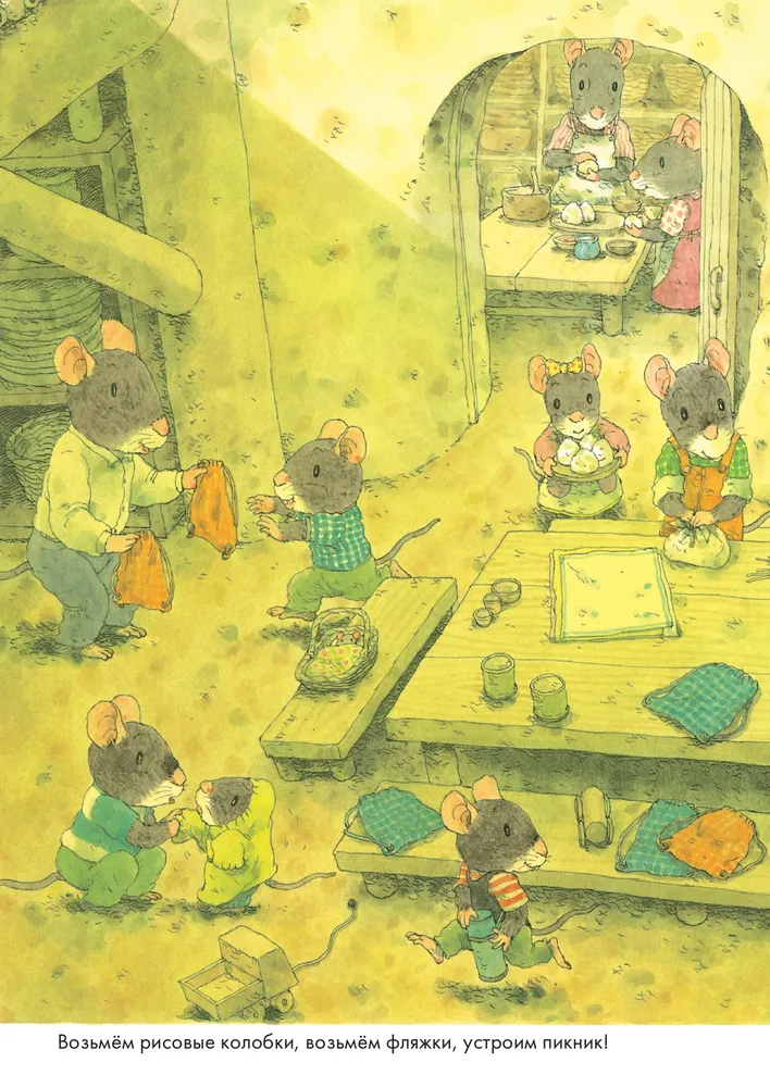 «14 лесных мышей» - очень популярная в Японии и многих европейских странах серия книг о красоте повседневности и о жизни трех поколений мышиного семейства: бабушки, дедушки, мамы, папы и еще десятка мышат.