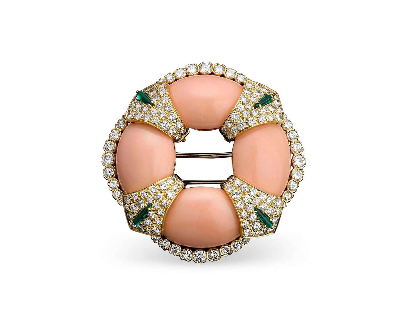 EMERALD, DIAMOND AND ENAMEL CLIP-BROOCH, DAVID WEBB