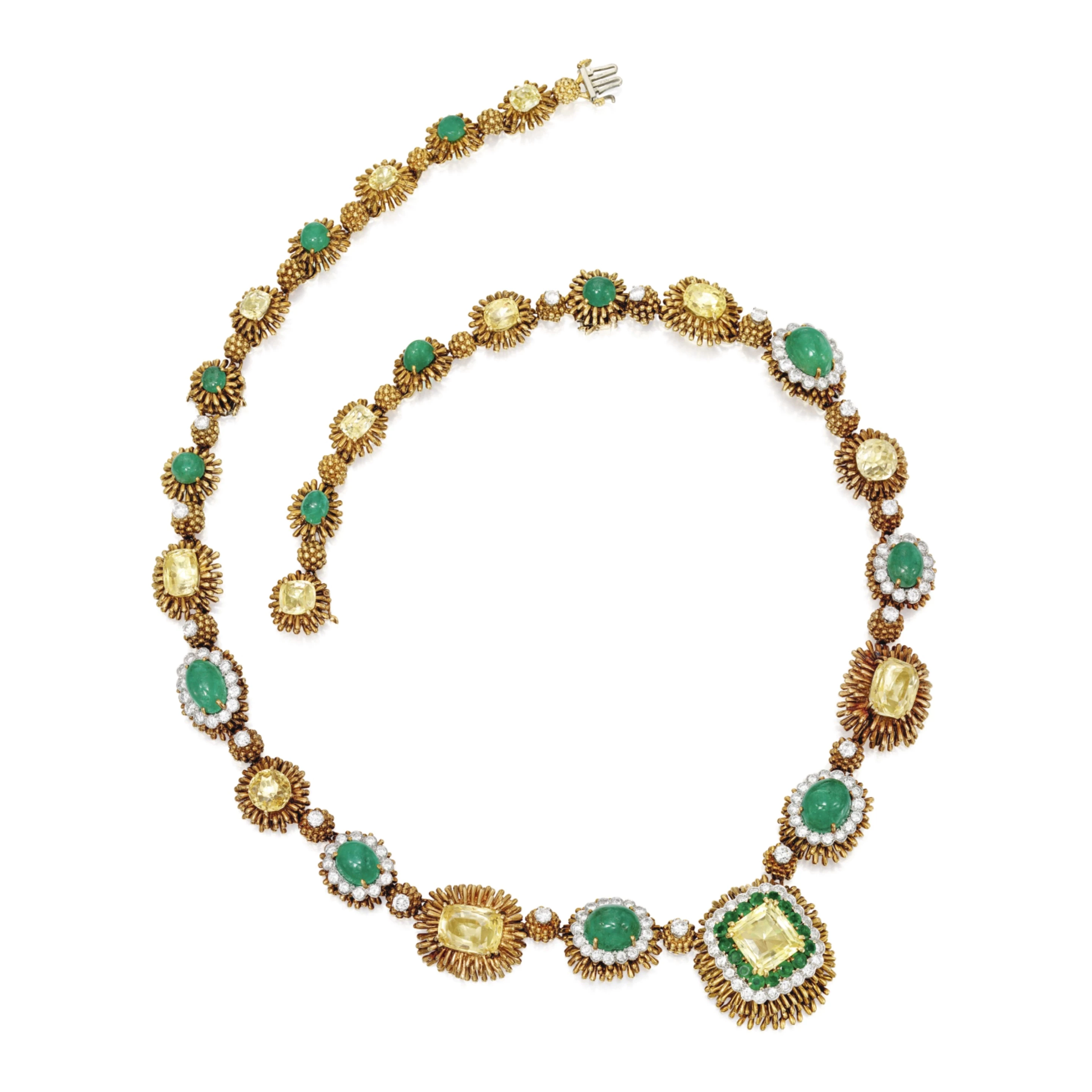 YELLOW SAPPHIRE, CITRINE, EMERALD AND DIAMOND BROOCH, DAVID WEBB, 1960S