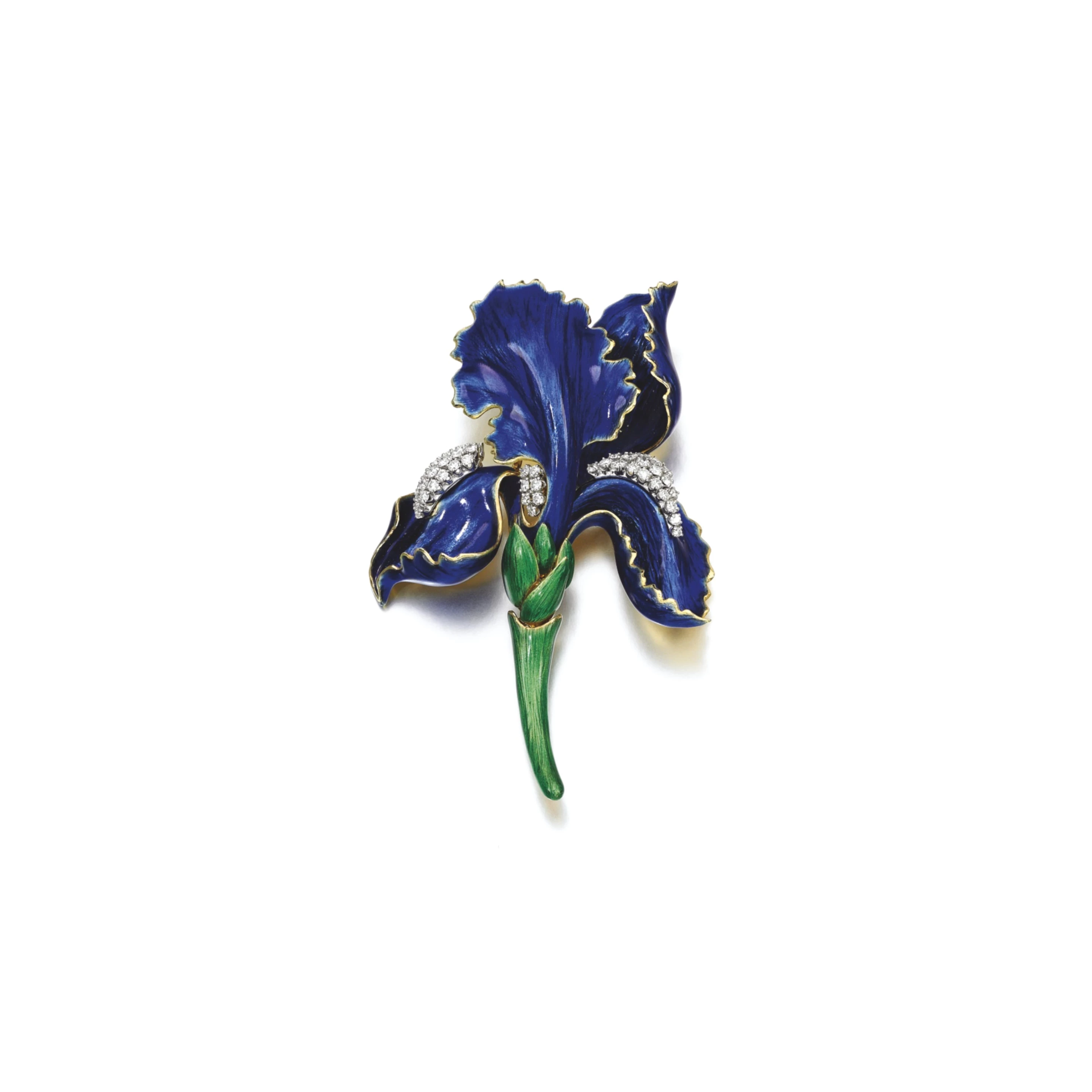GREEN AND BLUE ENAMEL BROOCH, 'IRIS', DAVID WEBB