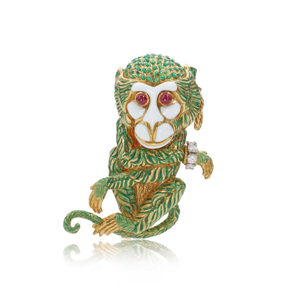 Enamel, ruby and diamond brooch, 'Gypsy Monkey'