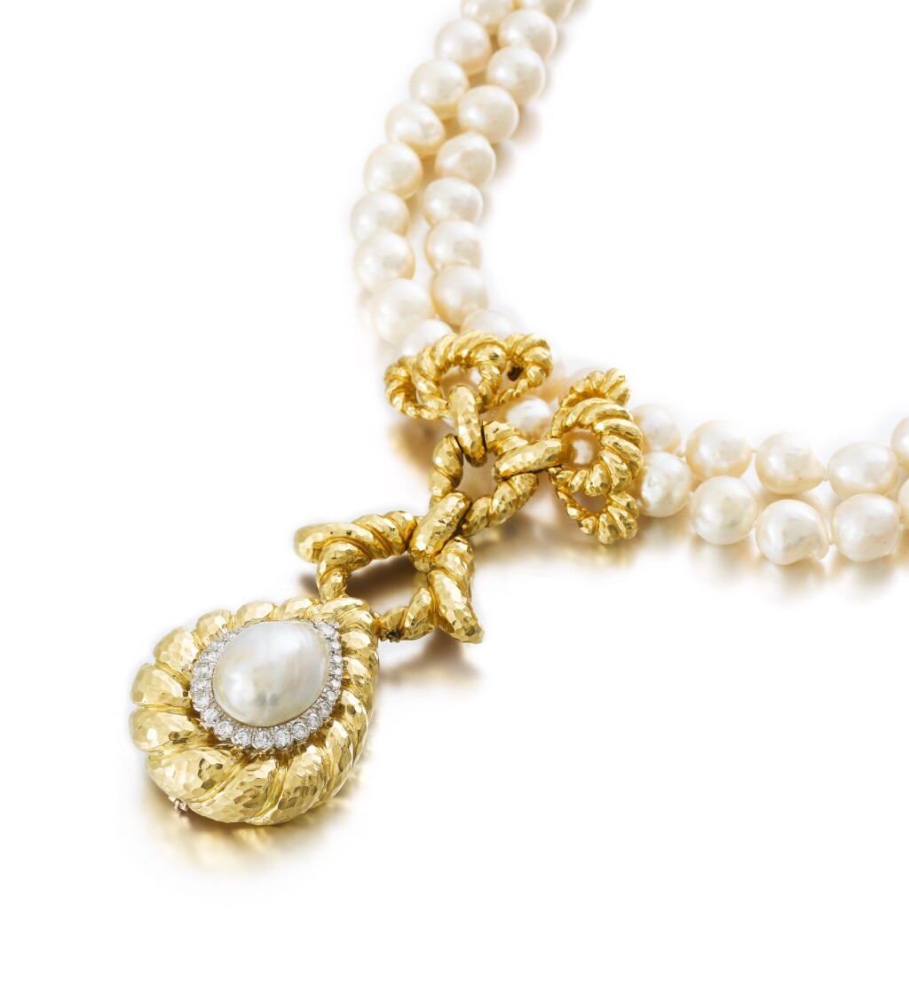 Cultured pearl, gold and diamond demi-parure | Demi-parure perles de culture, or et diamants