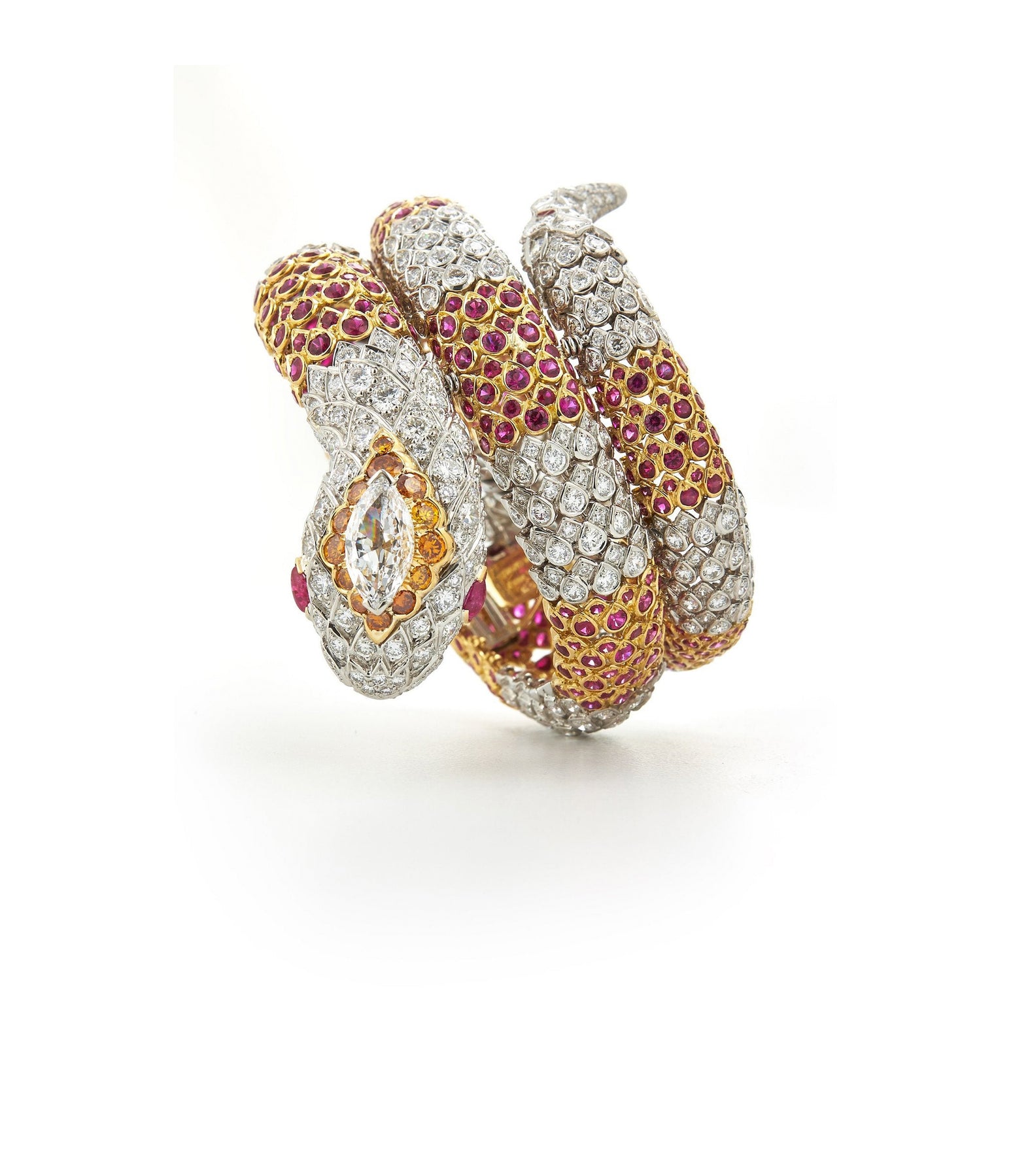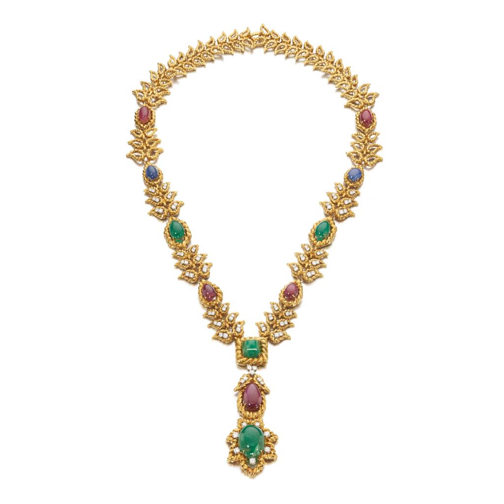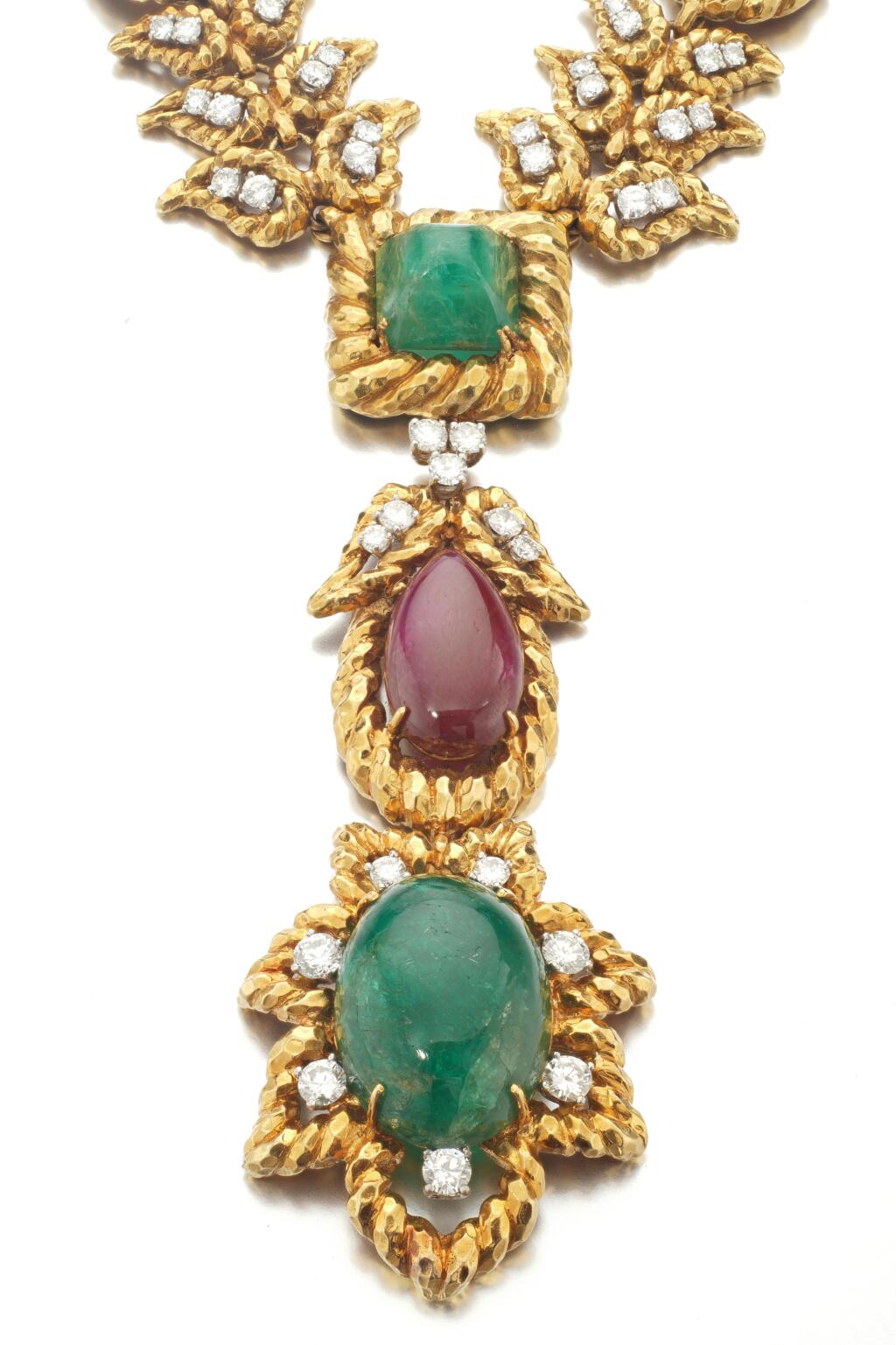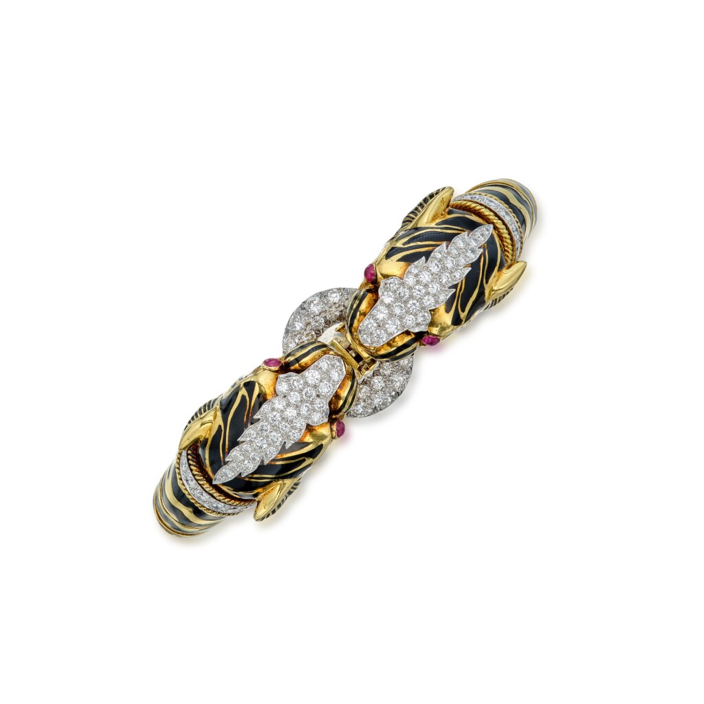 Couture - Lion Bracelet - Cabochon and pear-shaped emeralds, cabochon and square-cut sapphires, baguette-, triangular-, and brilliant-cut