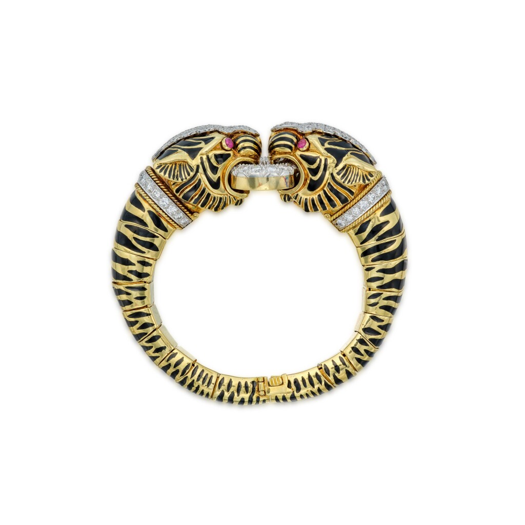 18 Karat Gold, Diamond, Emerald and Enamel Bangle-Bracelet David Webb