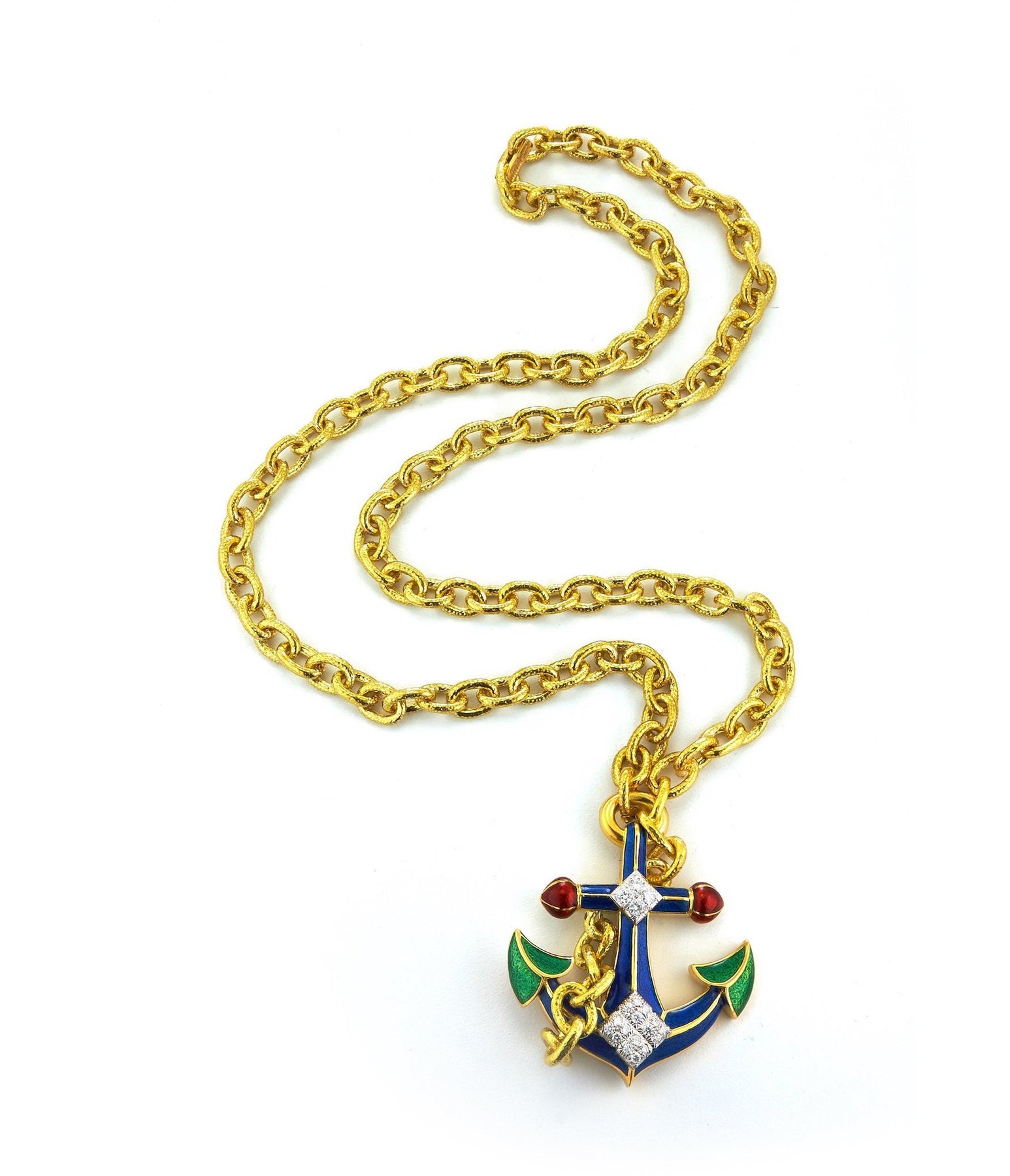 18 Karat Gold, Turquoise and Diamond Necklace-Brooch