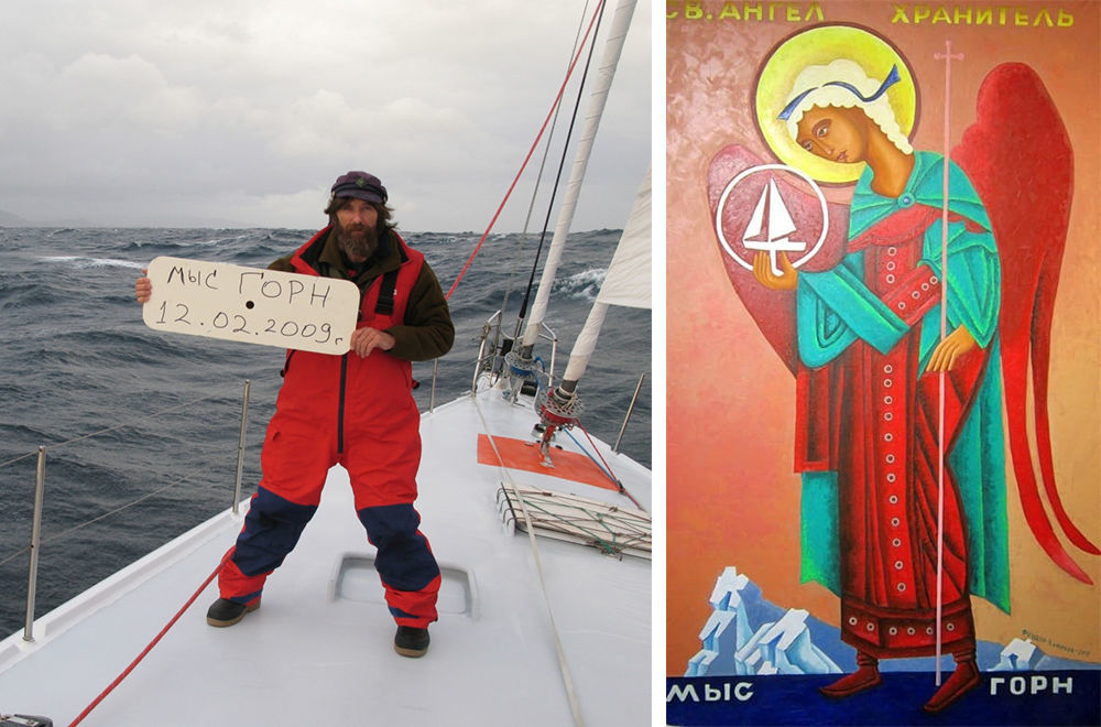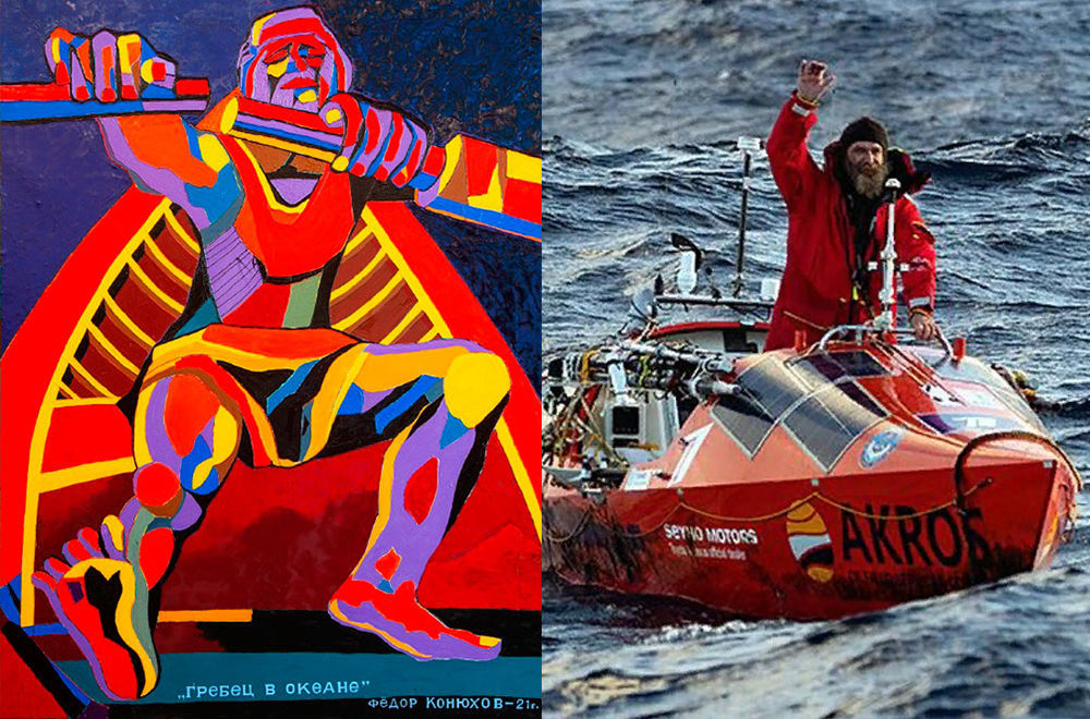 Путешествия – это не только романтика, но и опасность. Порой, увы, смертельная. Федор Конюхов неоднократно оказывался на грани жизни и смерти. В 2004 году Федор со своей женой Ириной пересекали вдвоём Атлантику на яхте и угодили в страшный шторм. Киль треснул, руль сломался, вода начала заливать яхту. Путешественникам чудом удалось спастись. Позднее, вспоминая этот случай, Конюхов нарисовал картину «Апостол Петр при дверях», на которой святитель похож на мифического Харона.