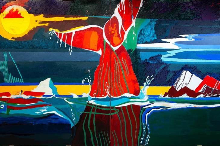 Для создания некоторых работ вместо холста использовалась ткань от воздушного шара, на котором Федор Конюхов совершил кругосветное путешествие в 2016 году.