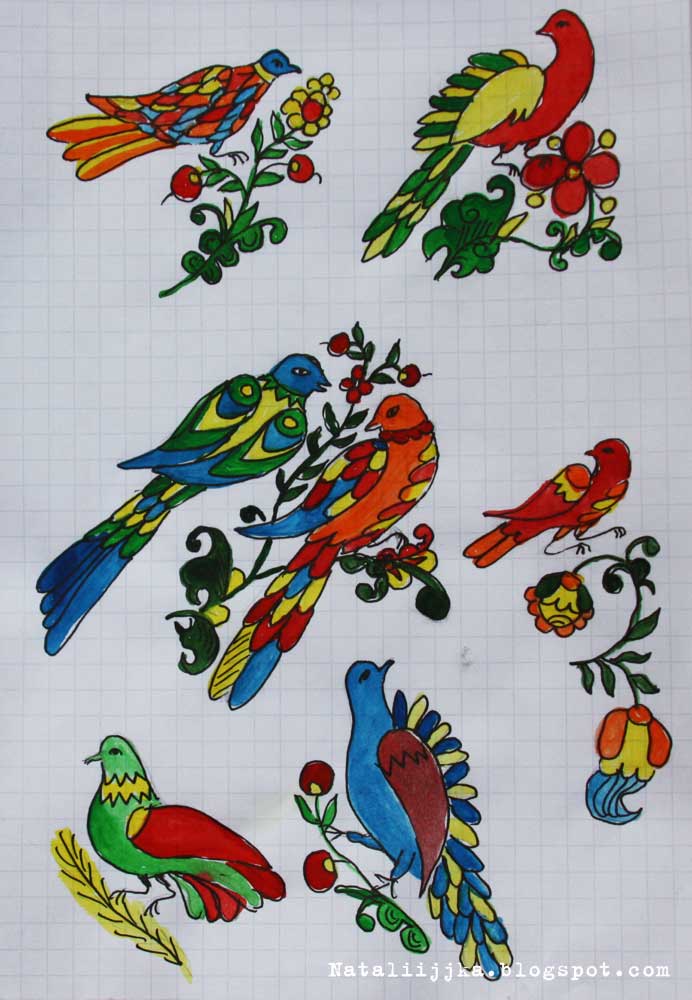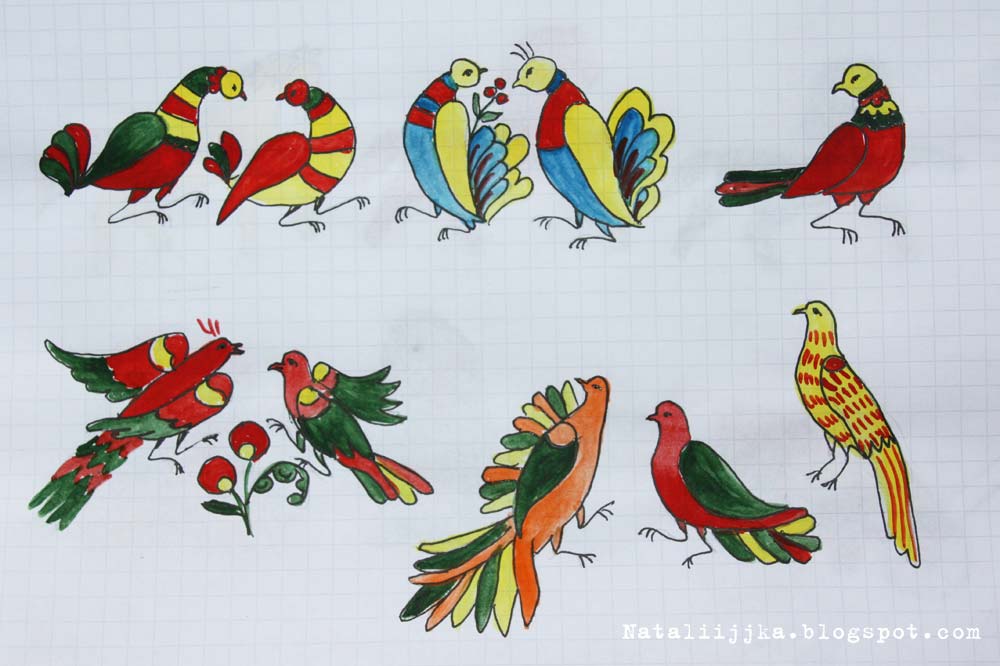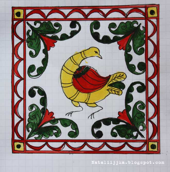 Все-таки, Борецкая роспись - очень солнечная и летняя. Наверное, в холодном Архангельском крае художникам очень хотелось продлить короткое северное лето. Может, поэтому в ней так много ярких, просто сказочно ярких птиц.