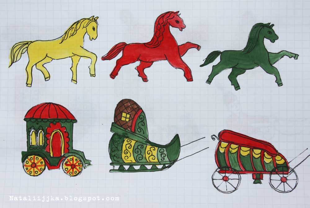 Продолжаем рисовать! Сегодня на повестке дня борецкие лошадки - полная противоположность мезенским. Хотя тоже симпатичные. Похожи на мультяшных. В этот раз потренировалась я совсем немножко, и нарисовала по заданию панно с пословицей. Попробовала рисовать акварелью на бумаге. Получается еще более ярко, чем гуашью.