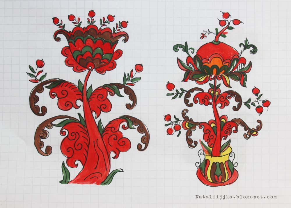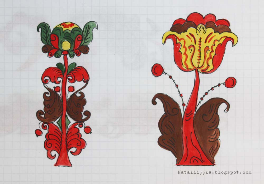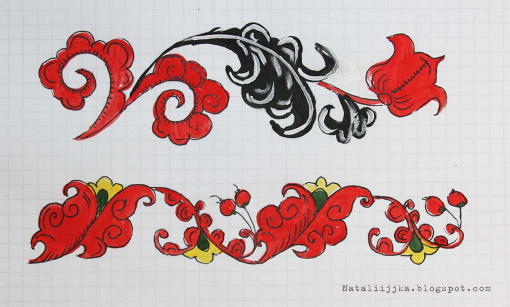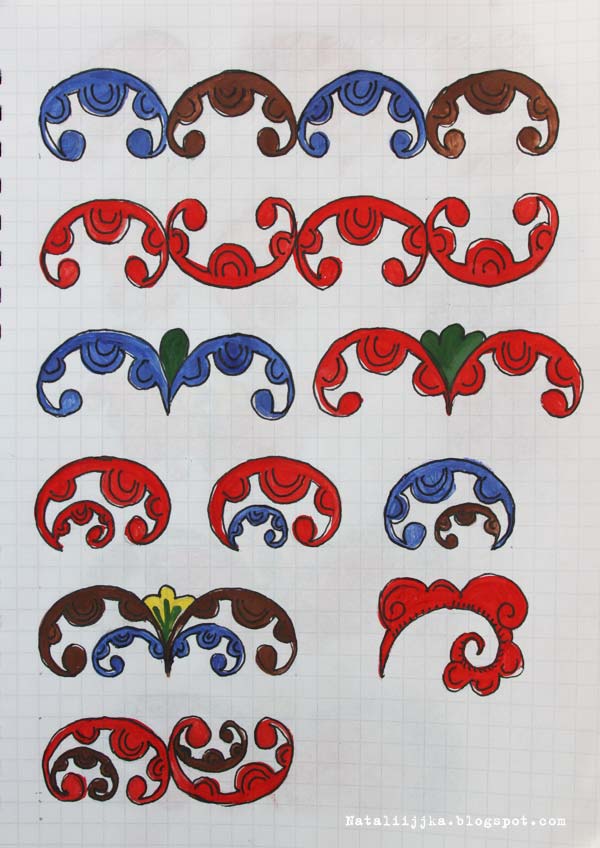 Кому интересно, ниже можно посмотреть на мои новые тренировочные упражнения в борецкой росписи. И - добро пожаловать в блог проекта Северные росписи!