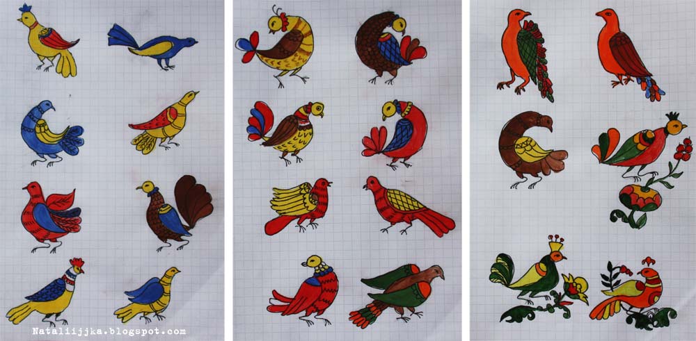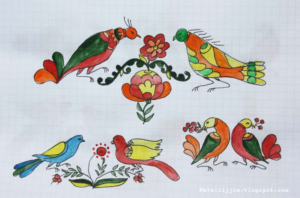 [показать]Продолжаем рисовать - теперь в блоге Северные росписи. Сегодня покажу самое начало нового этапа в проекте - первый урок по Борецкой росписи. Впечатления - разнообразно, ярко, радостно, но - трудно. Самой большой сложностью показалась черная обводка. На первом рисунке пробовала делать ее кисточкой.