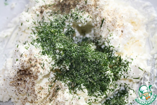 Солим и перчим по вкусу, добавляем мелко нарезаный чеснок и укроп.