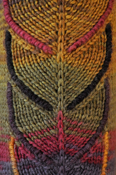 А тут вопрос уже другой:-Как добиться идеальной ровности дорожек,образующих ромбы на этом фото, да ещё и на изнаночной глади?!