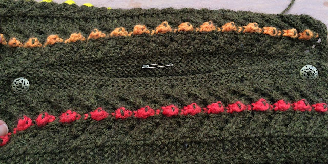 Опять нашла интересную для себя тему: Вертикально провязанные цветные строчки, по готовому полотну.