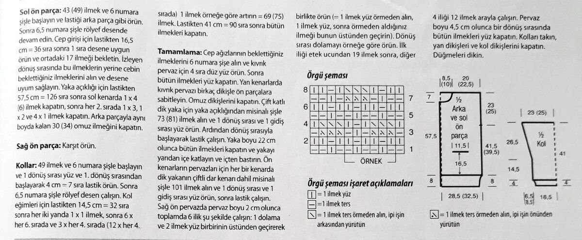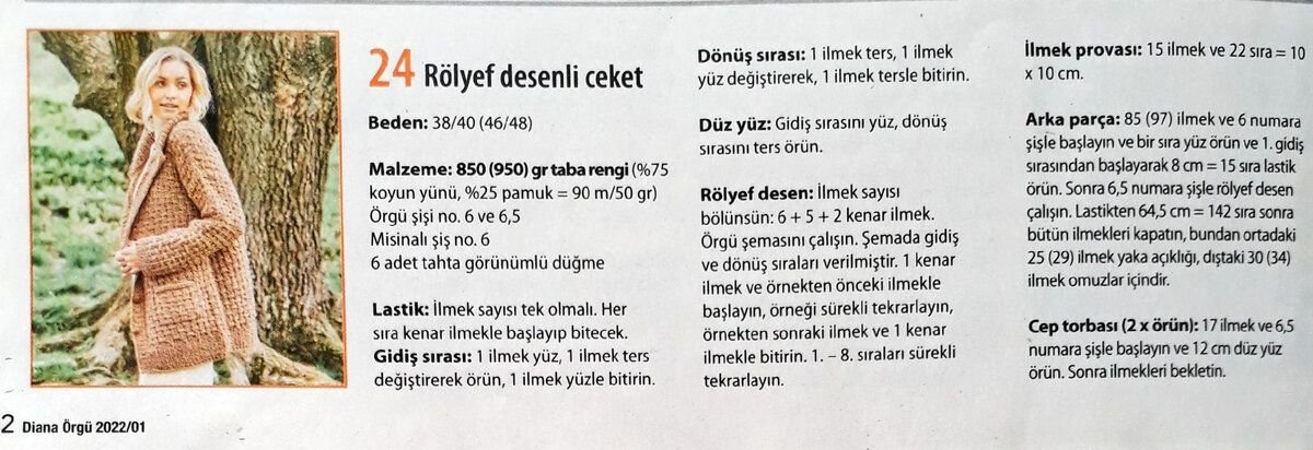 Схема вязания жакета из журнала Diana-örgü 1/22.