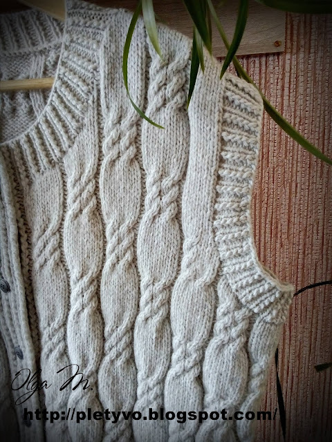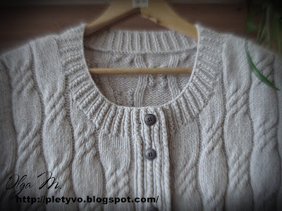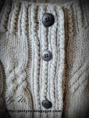 Вязала как левую, но в зеркальном отражении. Также на планке вывязывала петли для пуговиц в количестве 7шт.