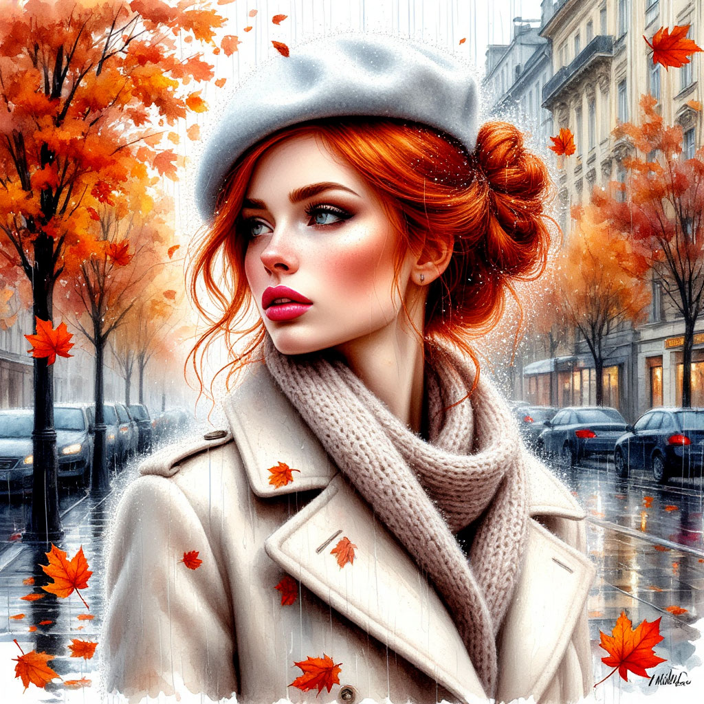 Нейросеть ~ *Девушка и осень*. ART by Ya_ni_Eva.