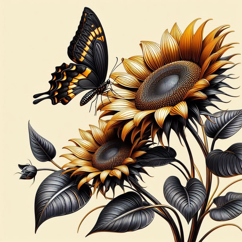 Нейросеть ~ *Бабочка на подсолнухе*. ART by Ya_ni_Eva.