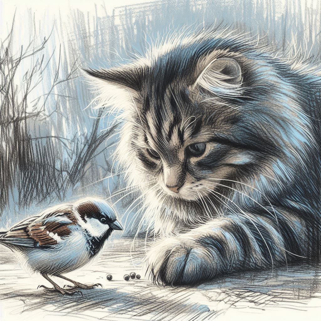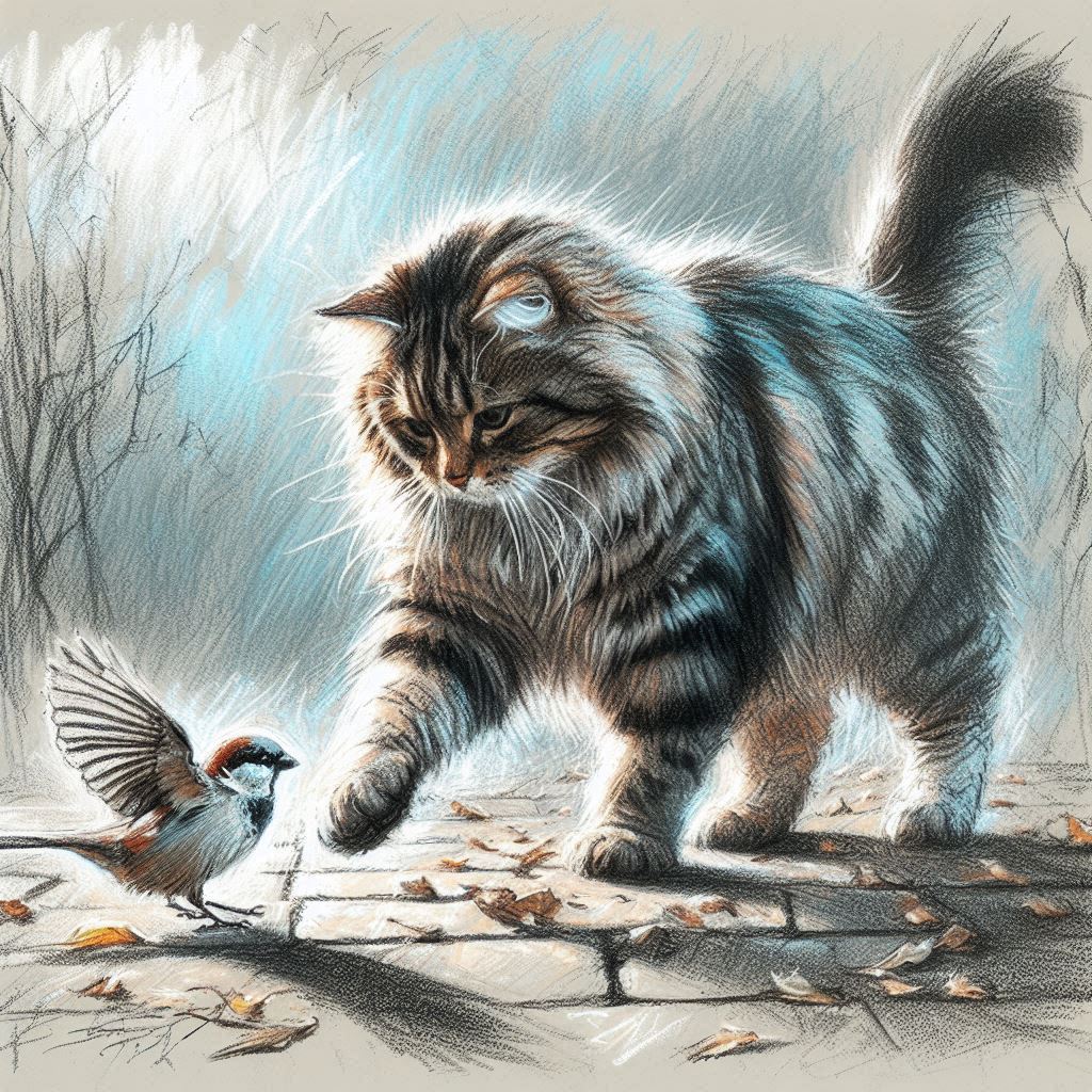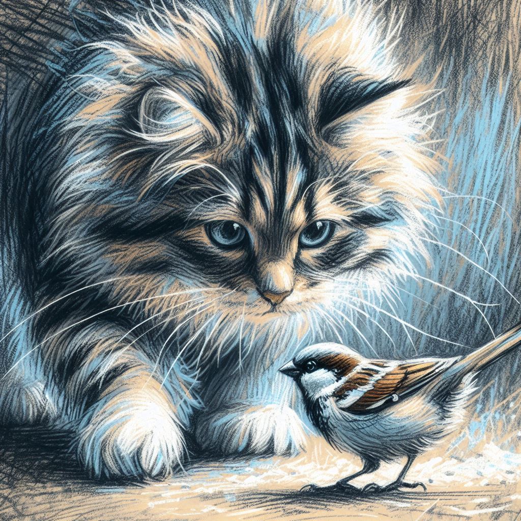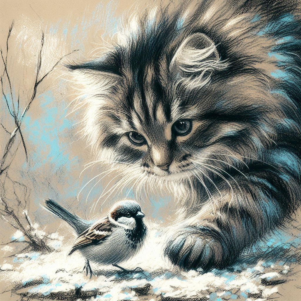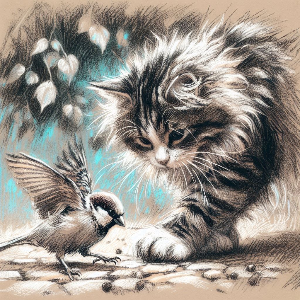 Дневник Нейросеть ~ *Кот и воробей*. ART by Ya_ni_Eva. | Я_ни_Ева - В каждом человеке есть солнце, только дайте ему светить! |