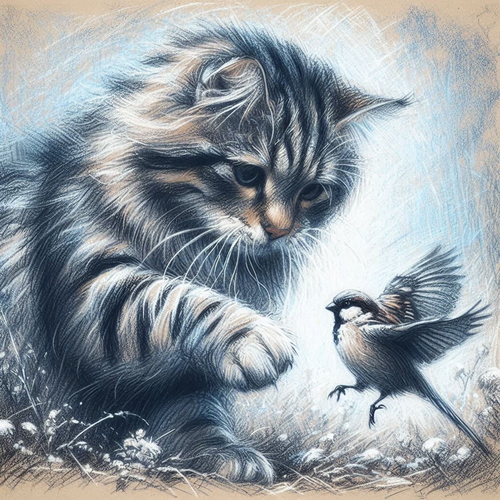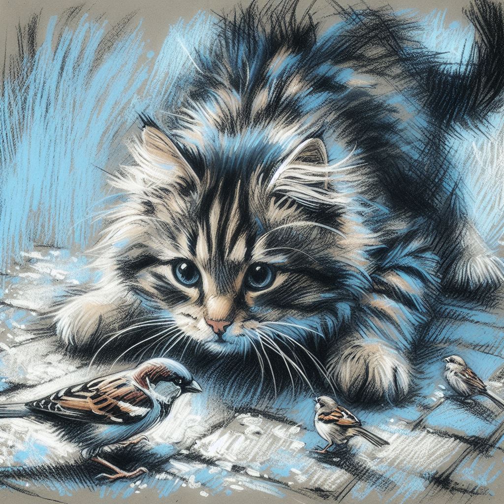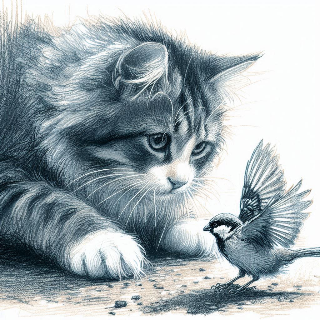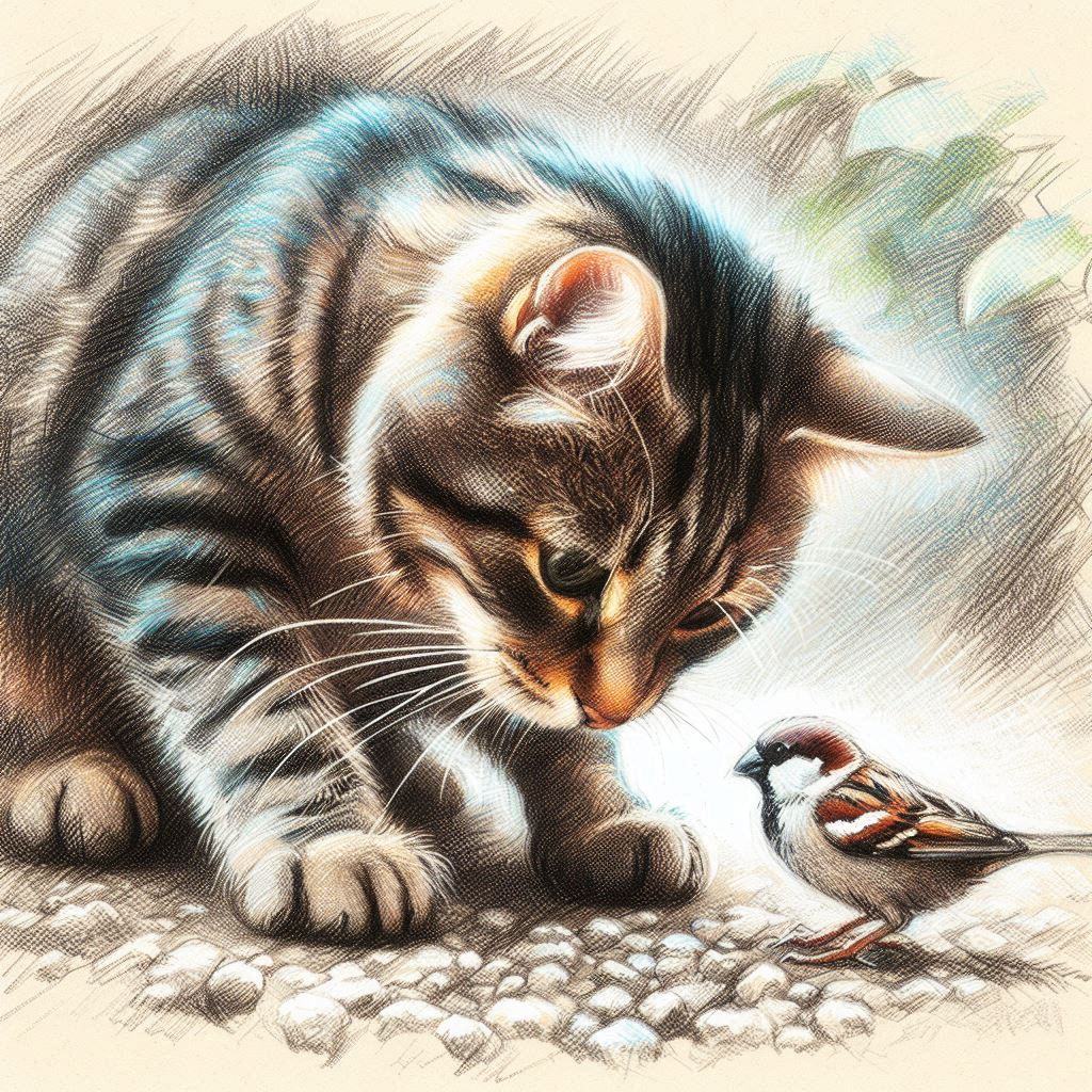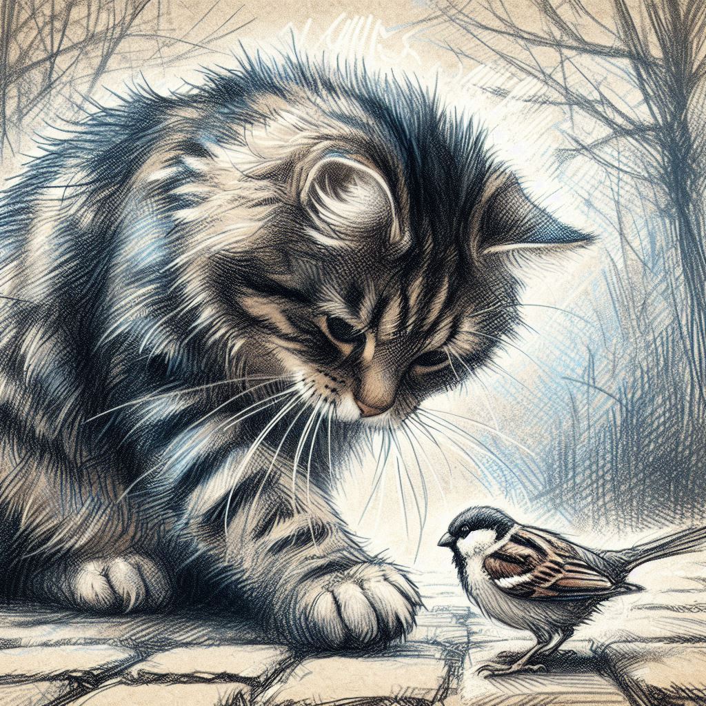 Дневник Нейросеть ~ *Кот и воробей*. ART by Ya_ni_Eva. | Я_ни_Ева - В каждом человеке есть солнце, только дайте ему светить! |