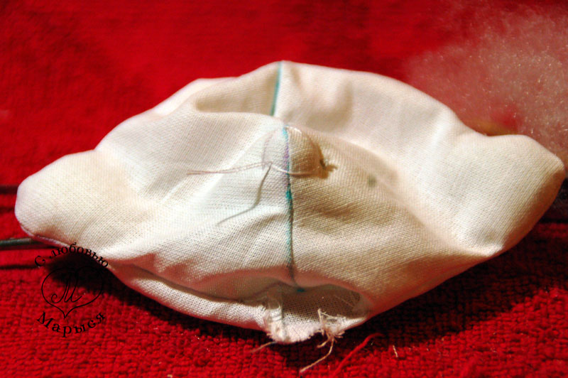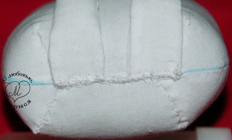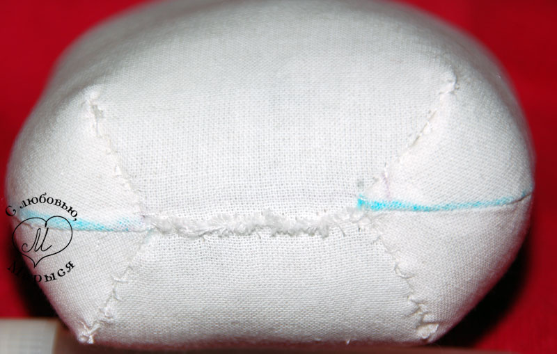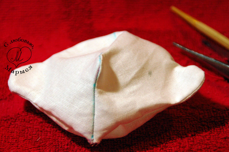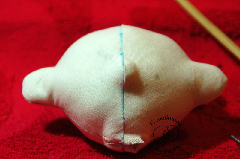 Теперь голова. Выворачиваем деталь и разравниваем швы изнутри палочкой