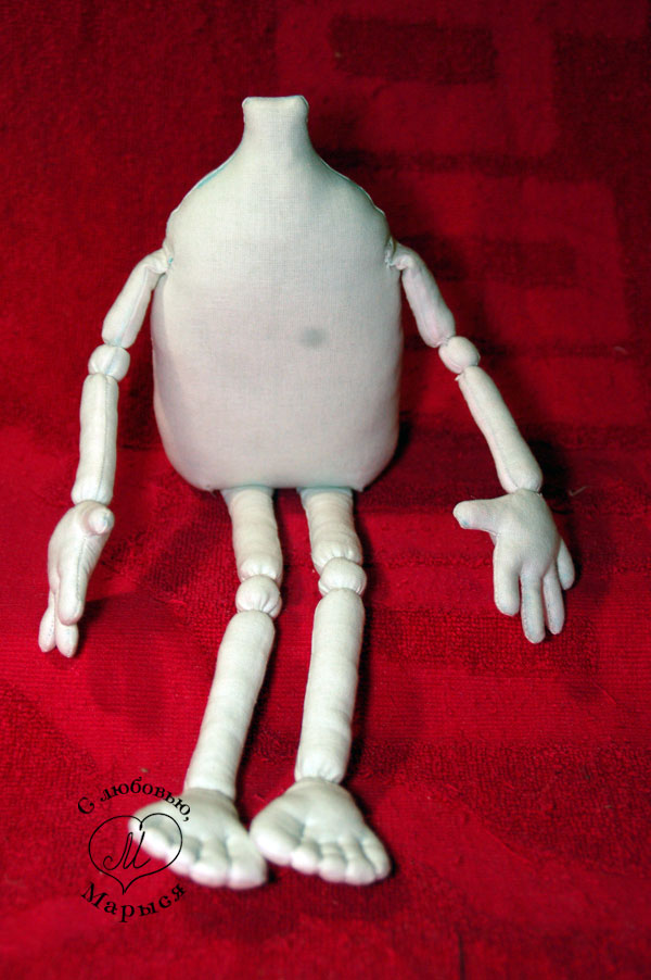 Теперь будем крепить ручки и ножки к туловищу.