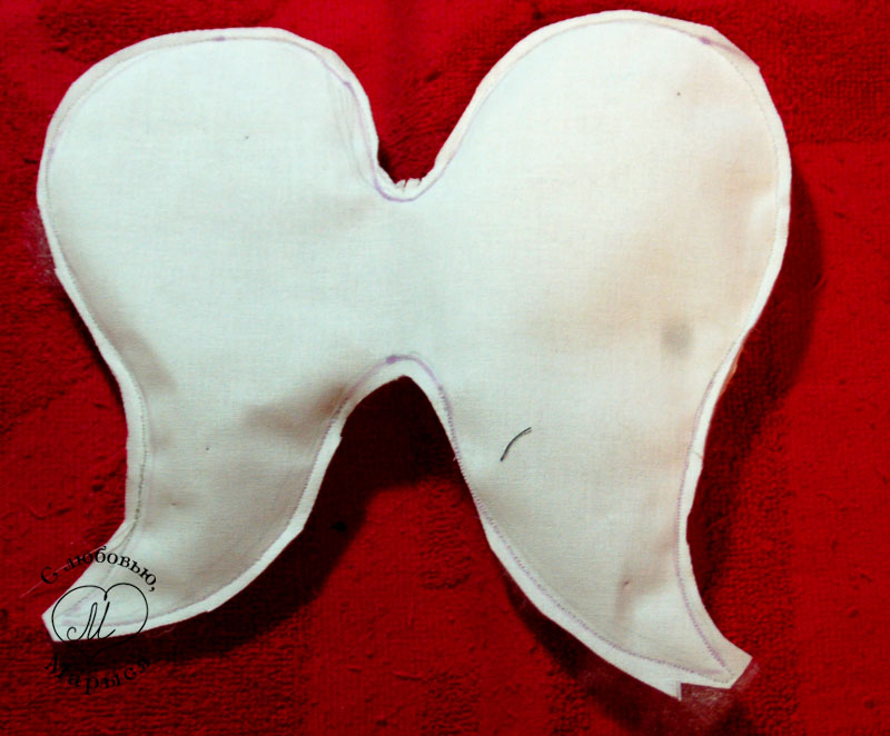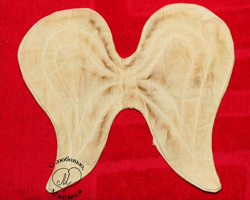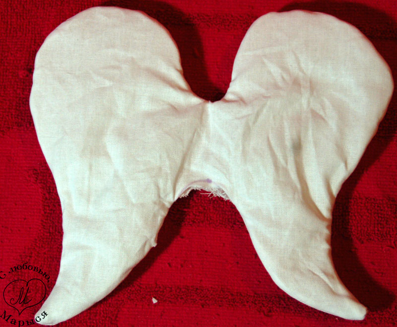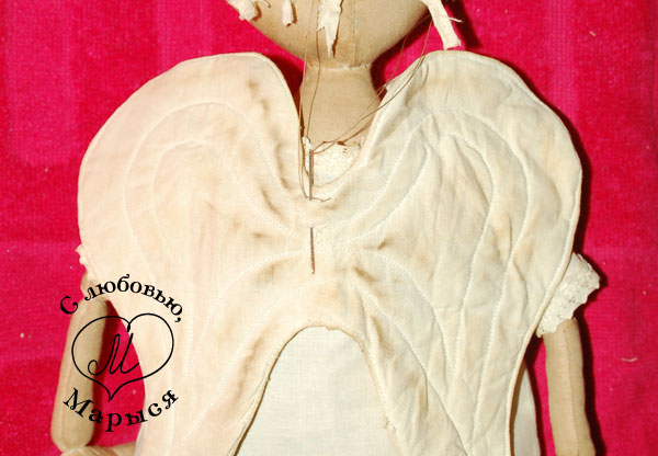 Я пришила к уже надетой на куклу рубашке, а вы можете сначала пришить крылья швом "иголка назад", а потом надевать.