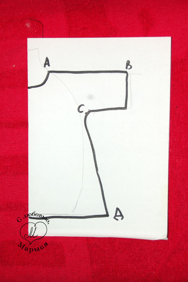 Сначала нарисовать горловину, как она вам представляется на кукле. Затем измерять, длину одёжки и длину рукава на кукле и отложить эти величины на схеме. АВ - длина рукава, СД - длина рубашки.