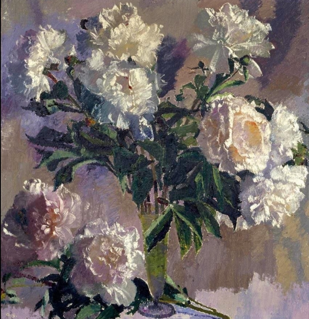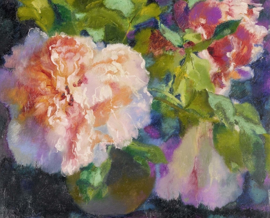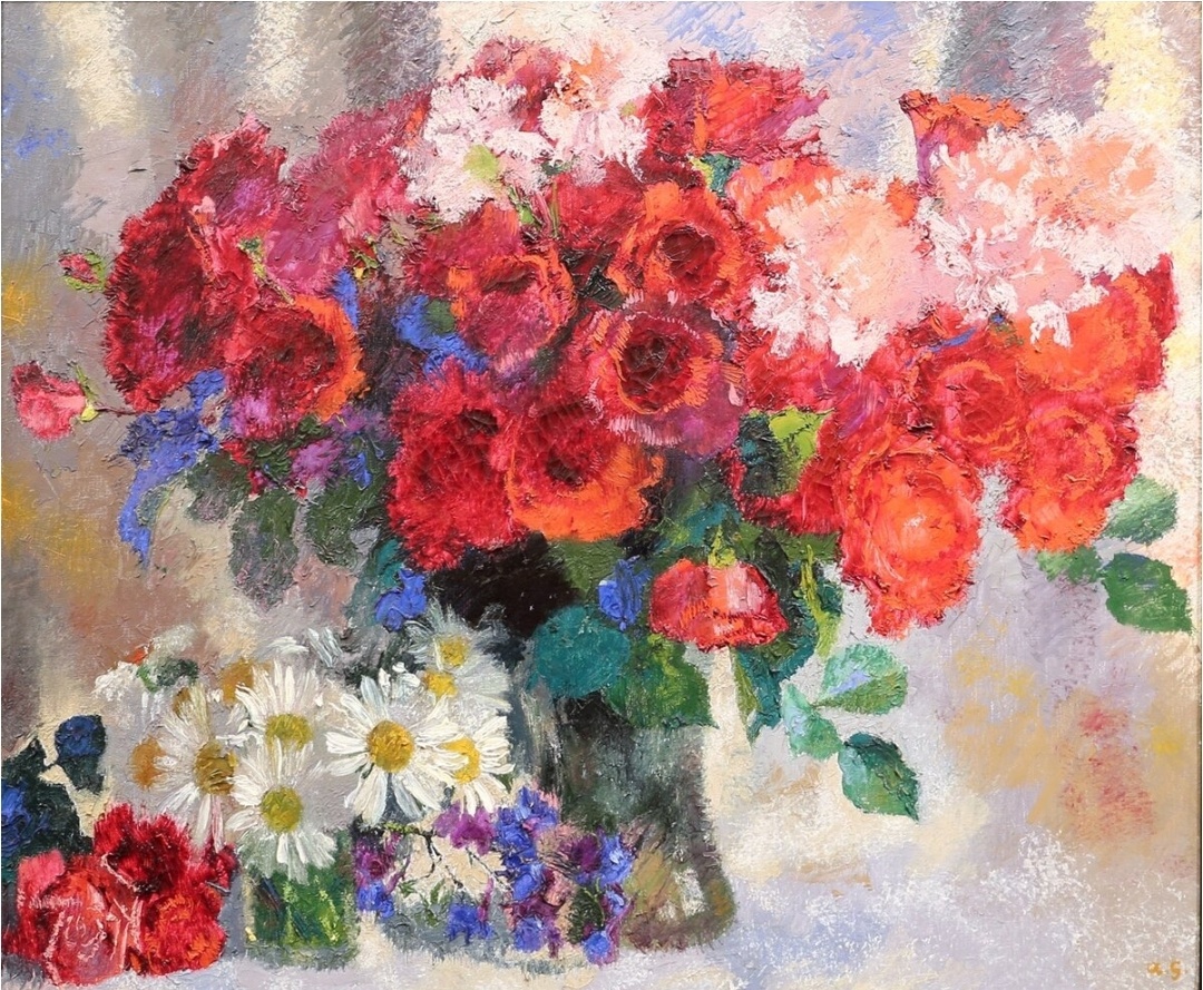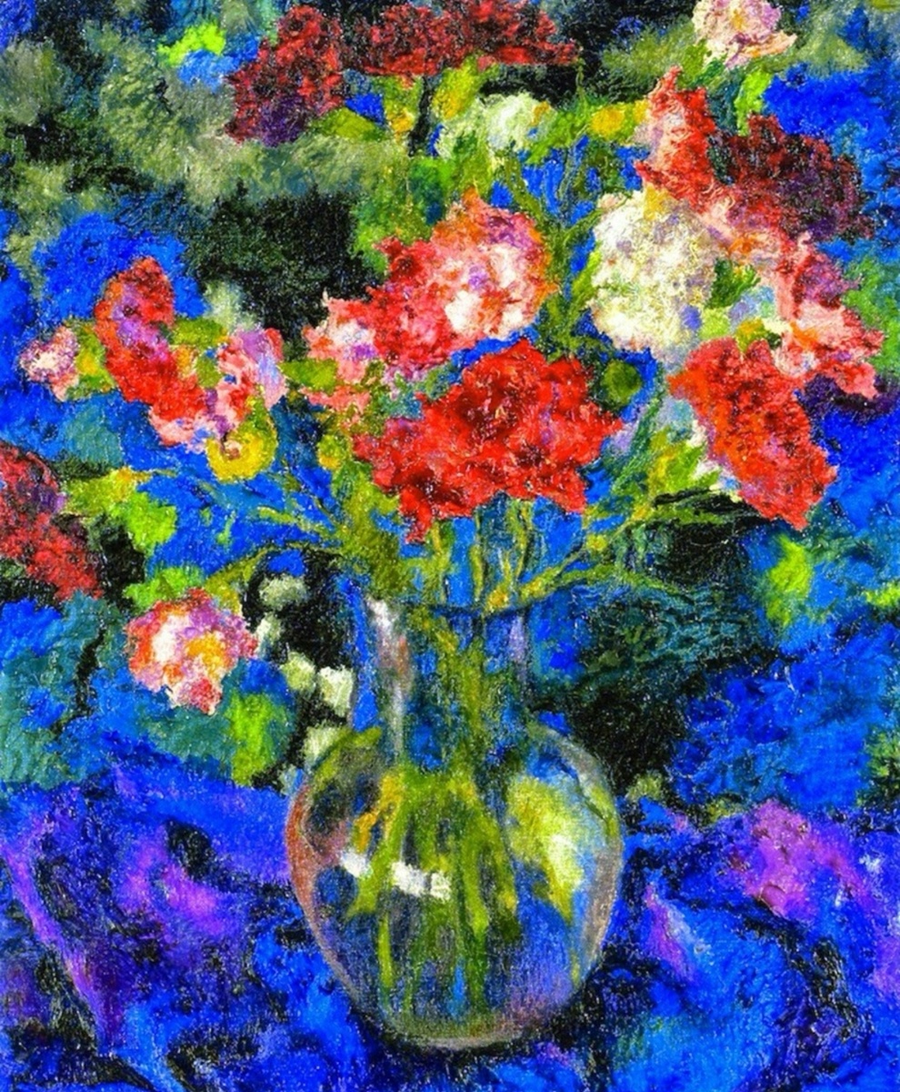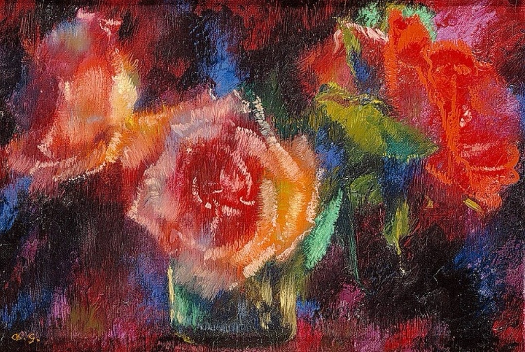 «Розы» (1929) — розы, написанные в яркой красно-синей гамме, с игрой светотени, создающей объём;