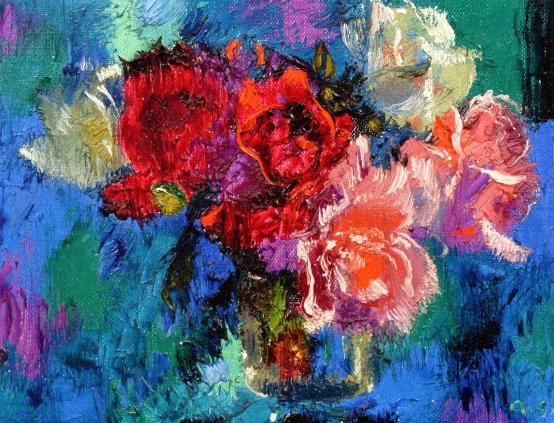 Джакометти называли Мастером цвета не случайно: его палитра сочетает нежность пастельных оттенков с драматичными яркими контрастами. При этом он оставался реалистом. Асимметричные расположения букетов, лёгкий хаос в пространства усиливают ощущение естественности. Художник виртуозно передаёт различия между бархатистыми лепестками, глянцевыми листьями и хрупкими стеблями, используя приемы импрессионистов...