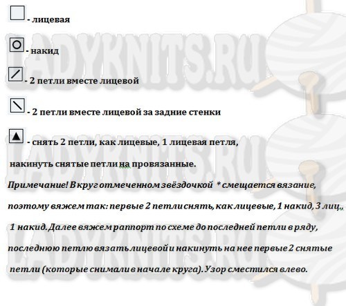 После схемы узора, продолжить лицевой гладью и убавить в первом кругу равномерно 28 (36) 38п.= 320 (348) 406п.