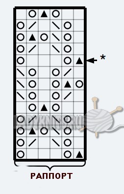 32п. Узором по схеме или резинкой 4х2 = 10 см.
