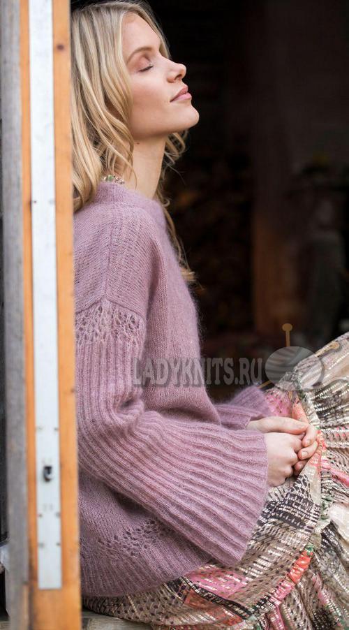 Вяжем лицевой гладью до 50 (54) 58 см, закрыть по центру 80 (82) 83п. Зате закрыть в каждом 2ом ряду у краю горловины по 2,2,1,1п.