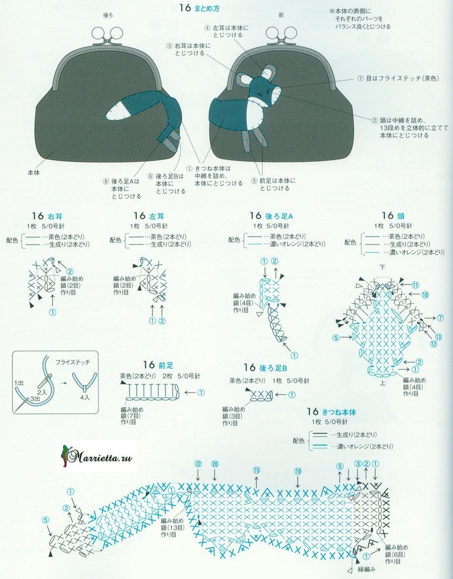 Детские кошельки крючком с аппликацией зверюшек. Схемы вязания.