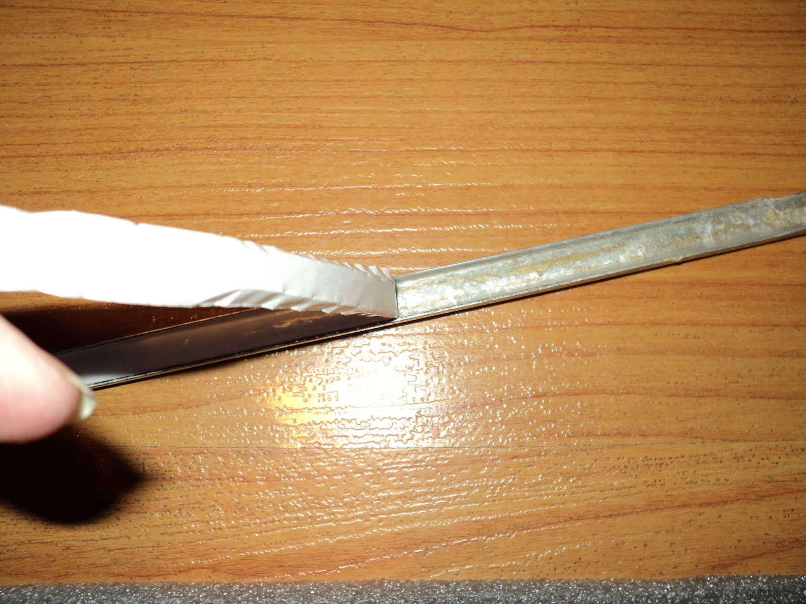 Какой же длины отрезаем полосу от двухстороннего скотча,только шириной 10мм.Для того чтоб скотч заходил немного на бока прижимной планки и держал поролон.И снимаем со скотча бумагу. |