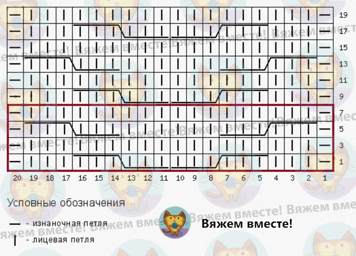 Принцип вязания обозначен на схеме.