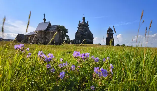 В нем расположены несколько деревянных храмов, построенных без гвоздей.